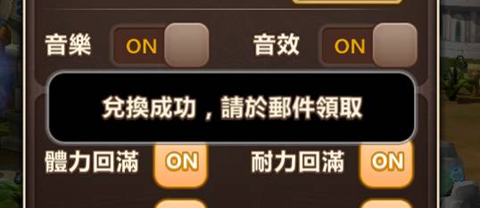 5.兌換成功後,會出現『兌換成功,請於郵件領取』的提示訊息