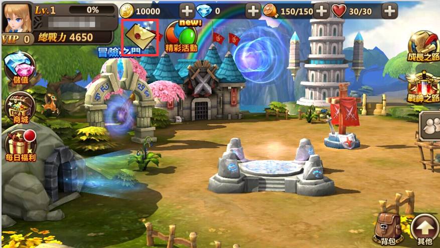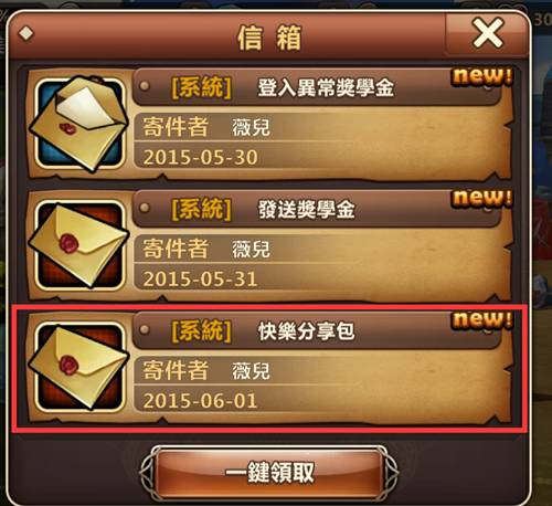 6.回到遊戲大廳首頁,『信箱』按鈕上,會有『新郵件』的圖示提醒