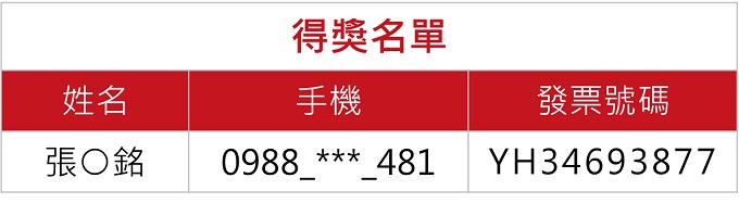 本活動中獎者須提供中獎憑證,若憑紙本發票正本兌獎,請與店家索取發票紙本正本。若發票存於載具中,自動視為同意主辦單位系統自動抓取您於財政部電子發票平台登錄該筆發票之資料,以利主辦單位核對發票號碼與消費明細,若幸運中獎才能符合領獎資格!