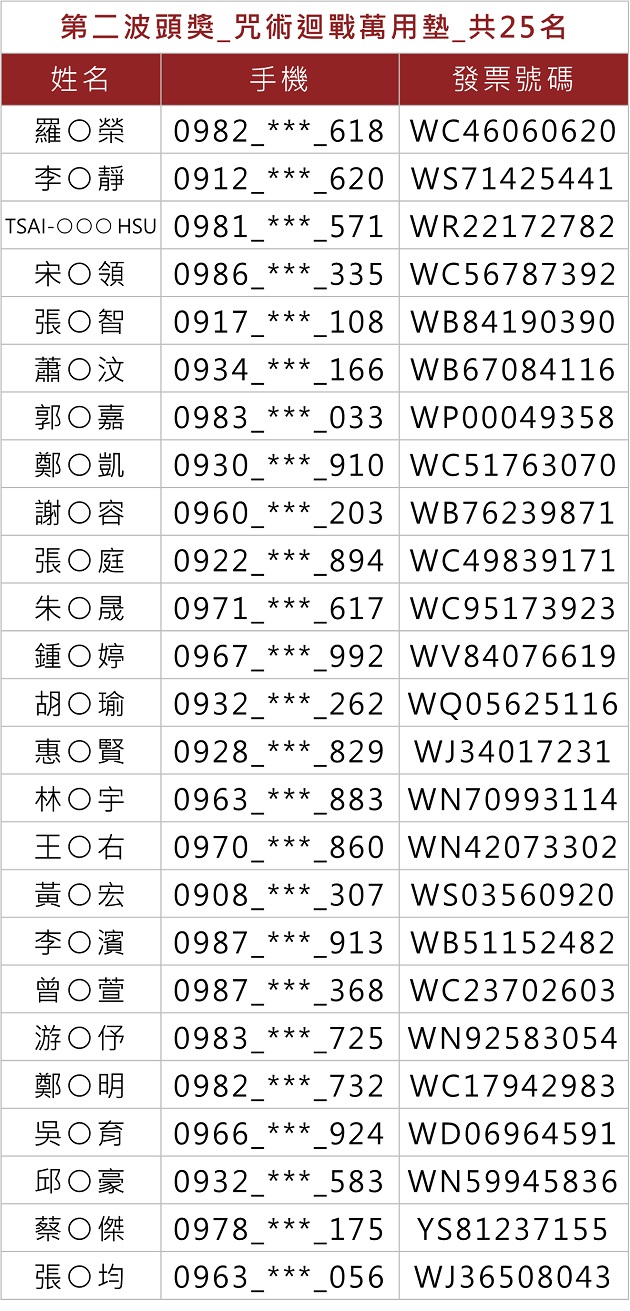 第一批中獎者,請於2026/02/02(一)截止前掛號寄回(憑郵戳日期,逾期視同放棄)。